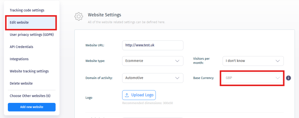 You can see what Base Currency you’ve set up by going to Edit website page. Changing it needs to be done from our end, so please contact us if you require the Base Currency changed.