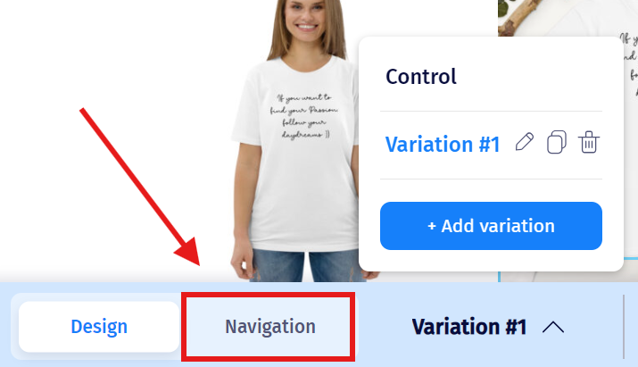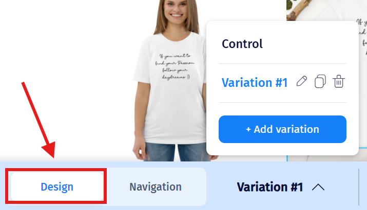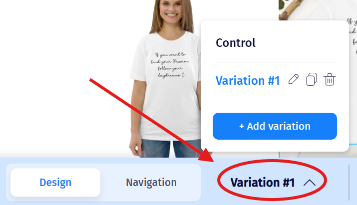 Hovering over the Variation Name will allow you to switch between Control and Variations, allowing you to add, delete or clone variations as per your needs.