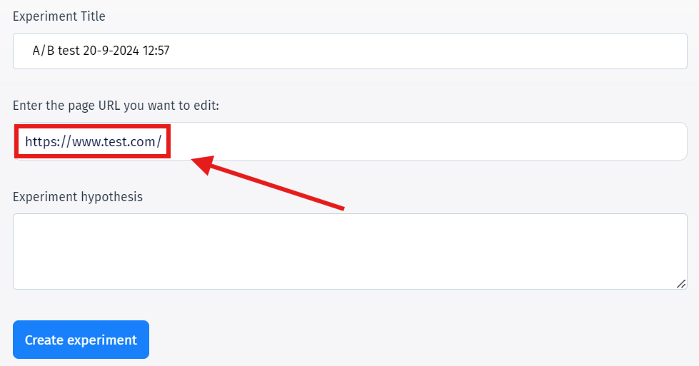 3. URL starts with: With this condition, the A/B test will run on all the pages that have an URL