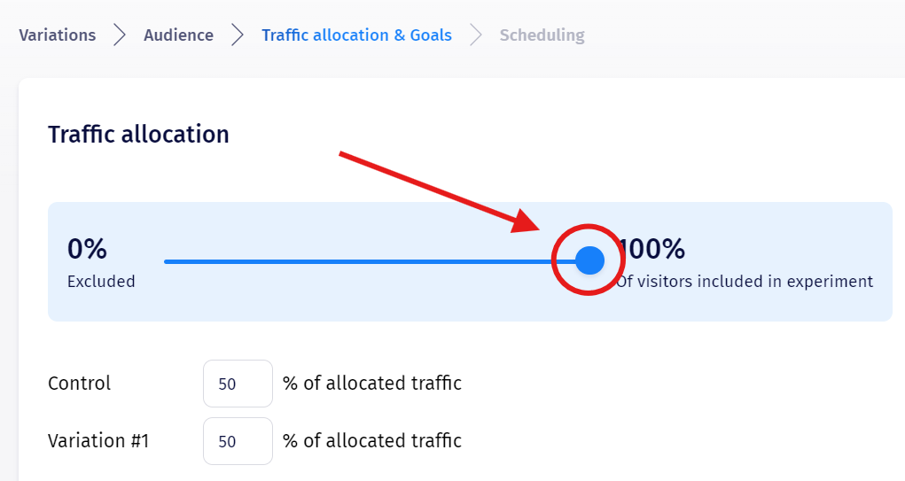 Move the slider in order to determine the percentage of visitors from the total amount that will be included in the experiment.