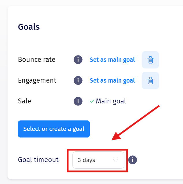 You can either select an already existing goal or create a custom one. Please remember that some goals might require integration on your website.