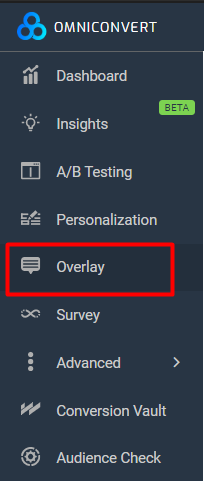 To create a new overlay, go to ‘Dashboard’  –>  ‘Overlay’ -> ‘Create an Overlay‘ button