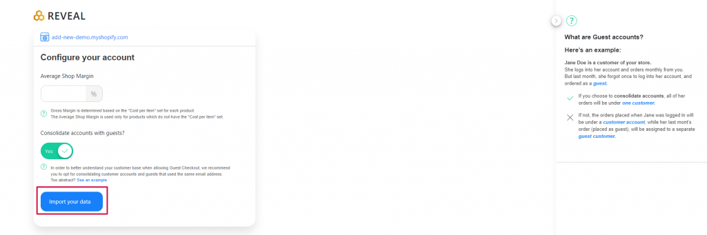 If you are new to Reveal and you’d like to connect your Shopify store, you can go here to install our Shopify App.