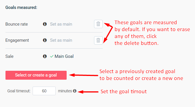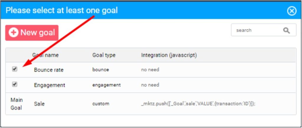 Then set up the goals that you want to track, either select from the list or create new ones: