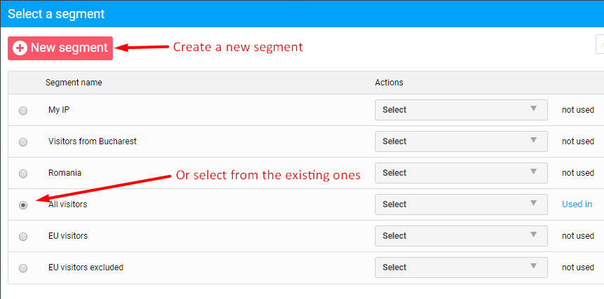 After you press the ‘Save’ button, select the radio button for the created segment to use it.
