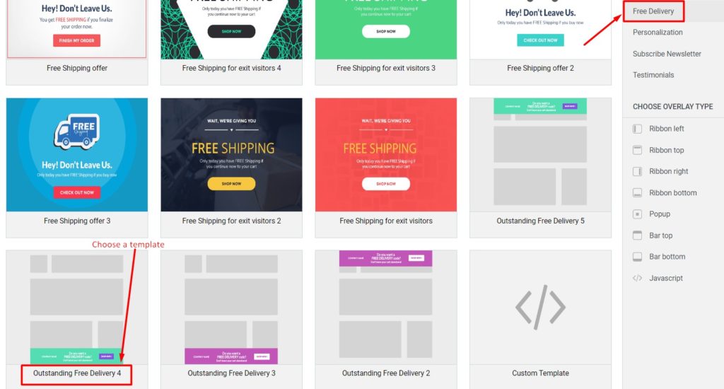 Then filter the available templates by selecting ‘Free Delivery’ and choose a template from the list (or, create your custom personalized one).