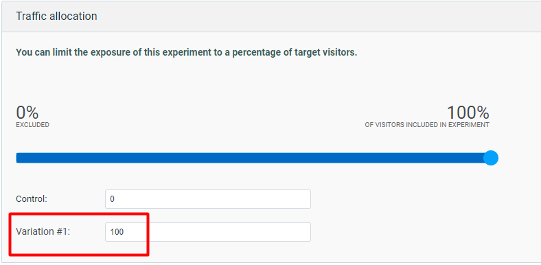Move the blue slider to allocate and split the traffic between Control and Variation(s):