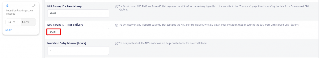 At this point, the Post-Delivery NPS survey has been created in Omniconvert Explore and the NPS Survey ID – Post-delivery field has been pre-filled in Reveal Store Settings > General > NPS section > NPS with the ID of the survey created automatically in Omniconvert Explore.