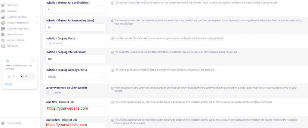 You can choose when to send invitations for NPS via email, how long invitations are valid and define rules to avoid spamming your customers.