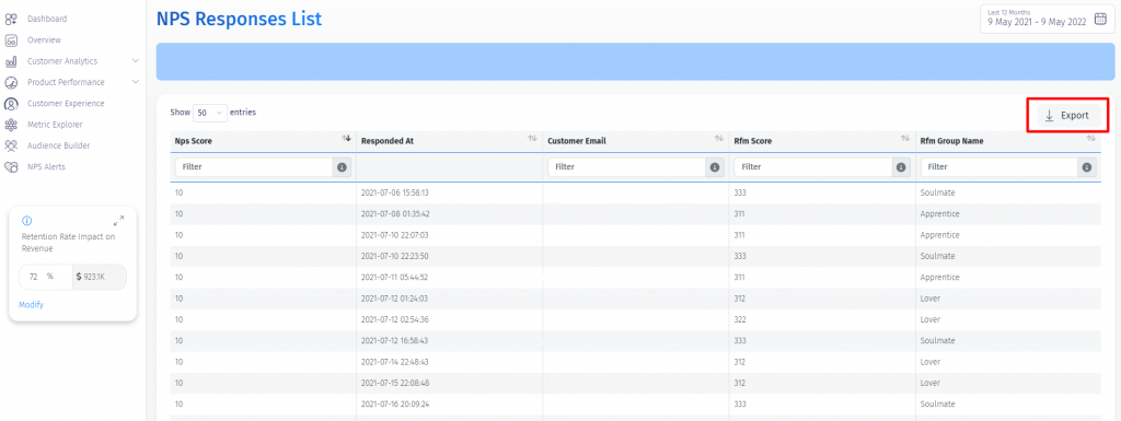You can download your NPS Responses from the Reveal interface by following these steps: