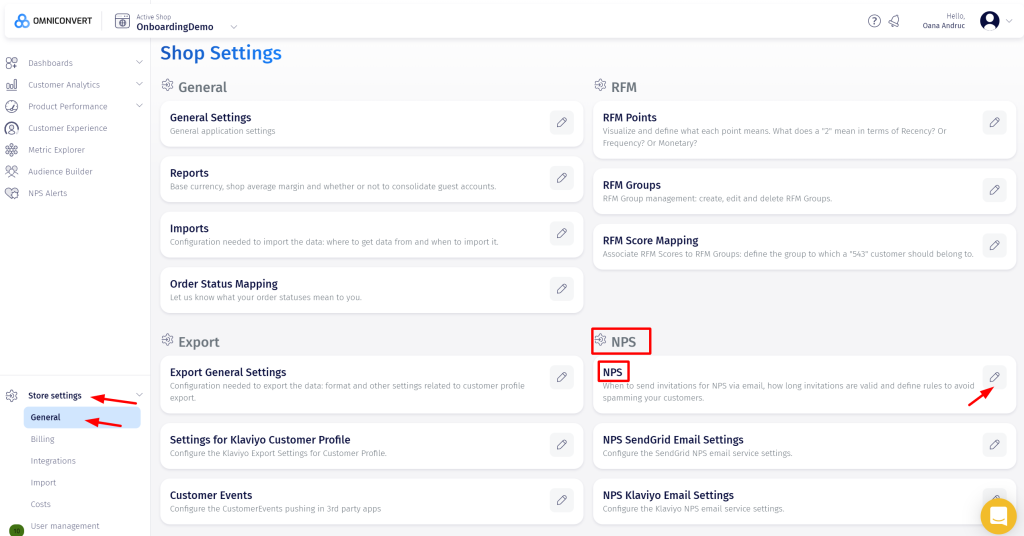 Next, go to Store Settings > NPS section > NPS. Check if the settings match your needs and to provide the mandatory information.