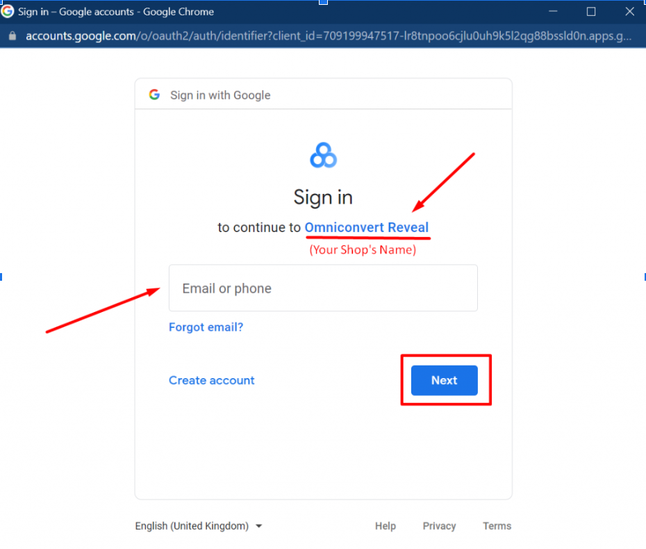 A pop-up window will appear, where you need to input your Google account’s email or phone:
